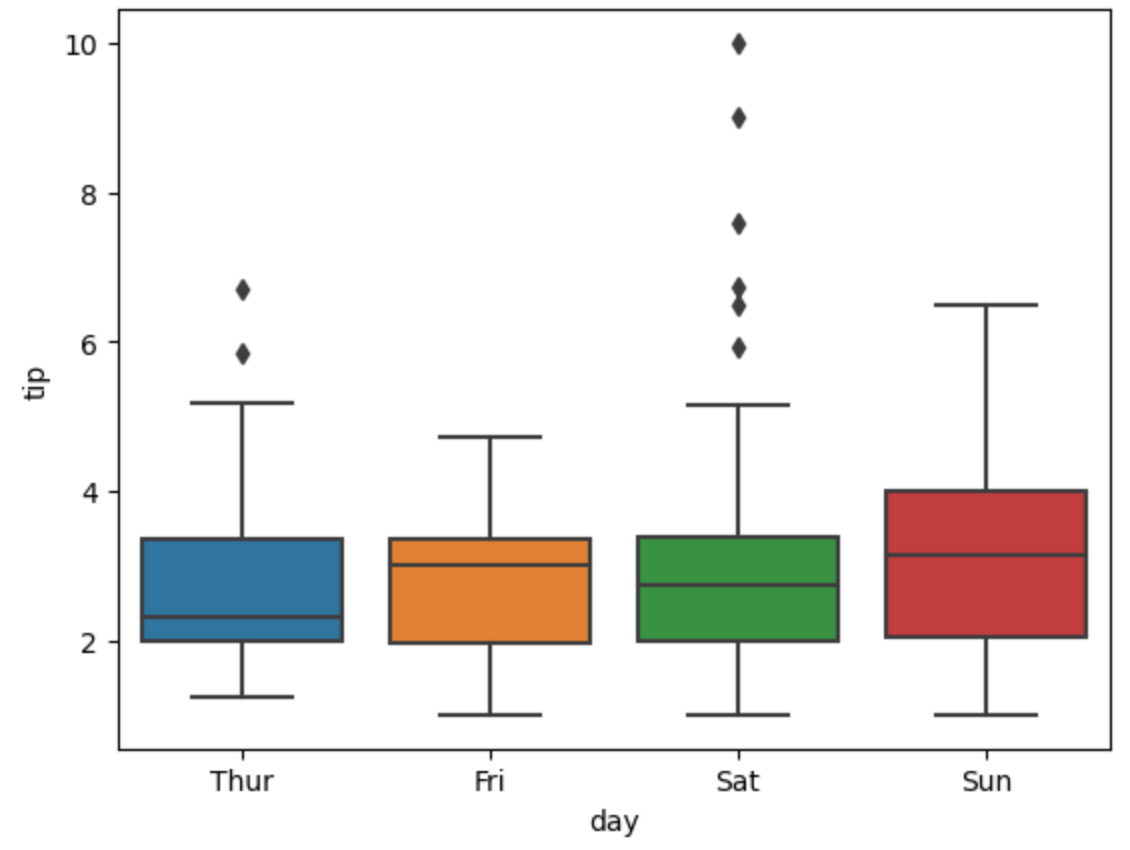 - sns.boxplot(data = df, x = ' ', y = ' ', hue=' ') : 상자그림
